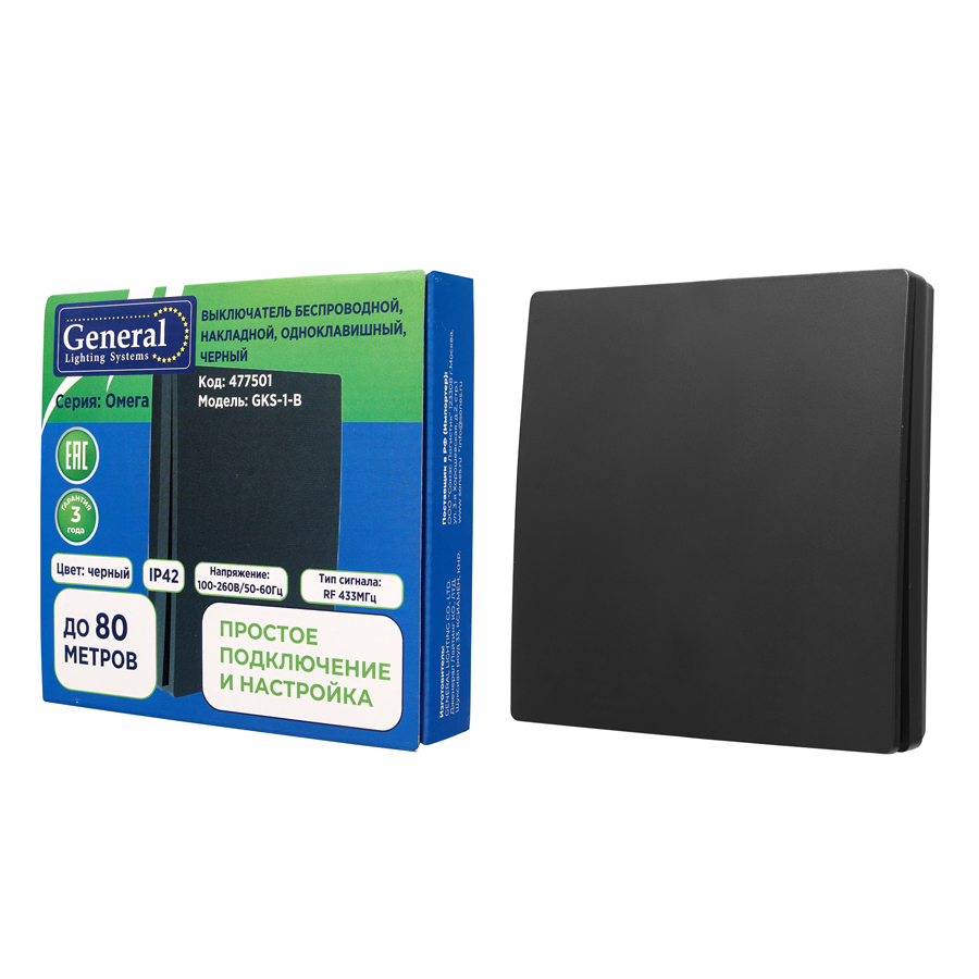 Выключатель беспроводной, накладной, одноклавишный, черный