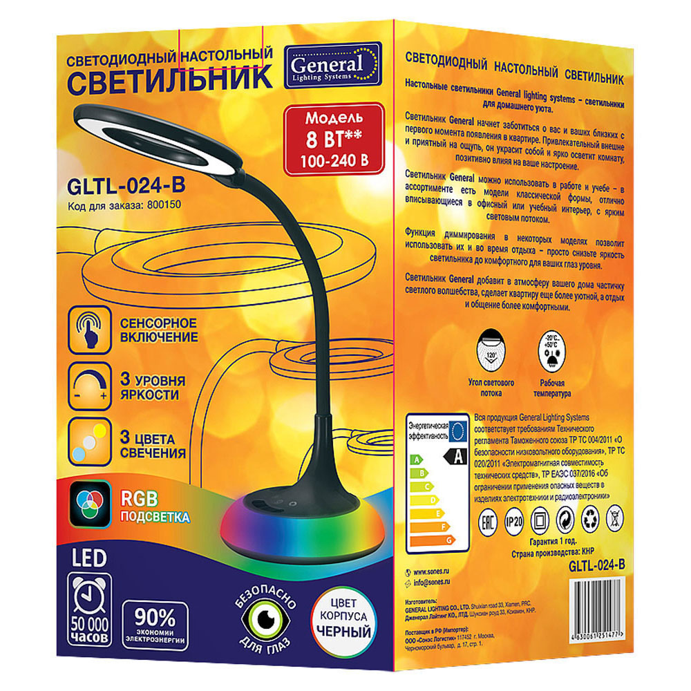 Светильник GLTL-024-B 8Вт RGB черный