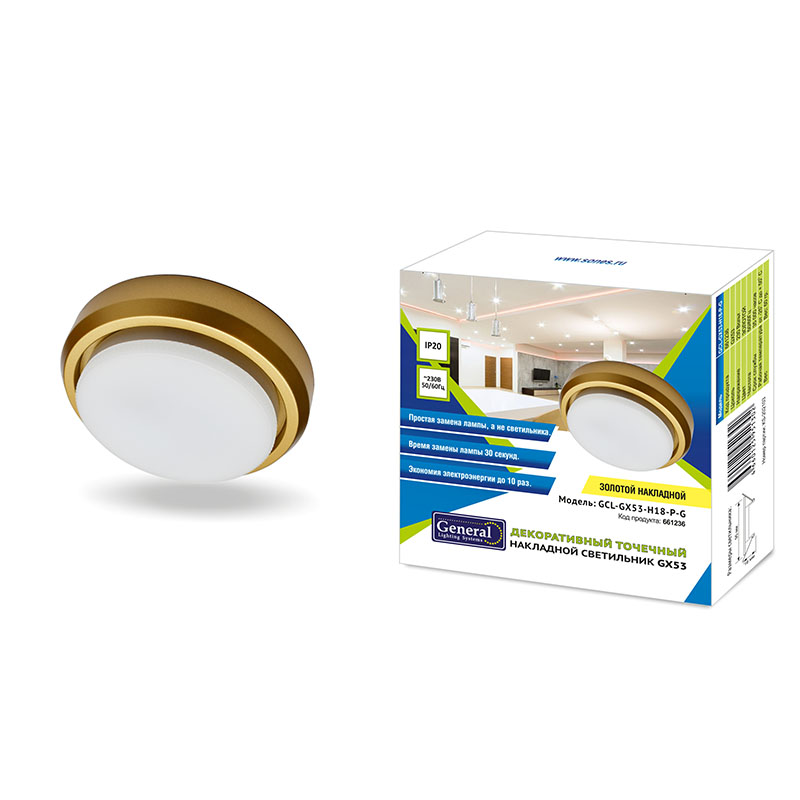 Светильник GCL-GX53-H18-P-G ЗОЛОТОЙ накладной пластиковый