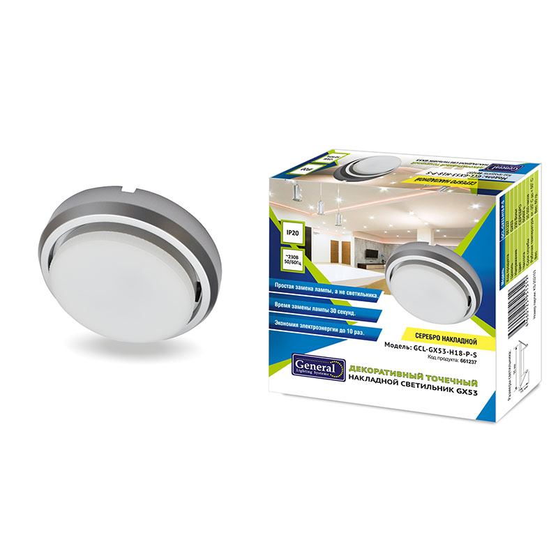 Светильник GCL-GX53-H18-P-S СЕРЕБРО накладной пластиковый