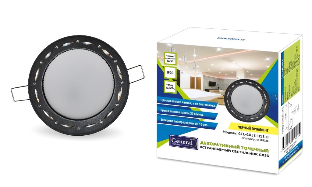 Светильник GCL-GX53-H18-B ЧЕРНЫЙ ОРНАМЕНТ
