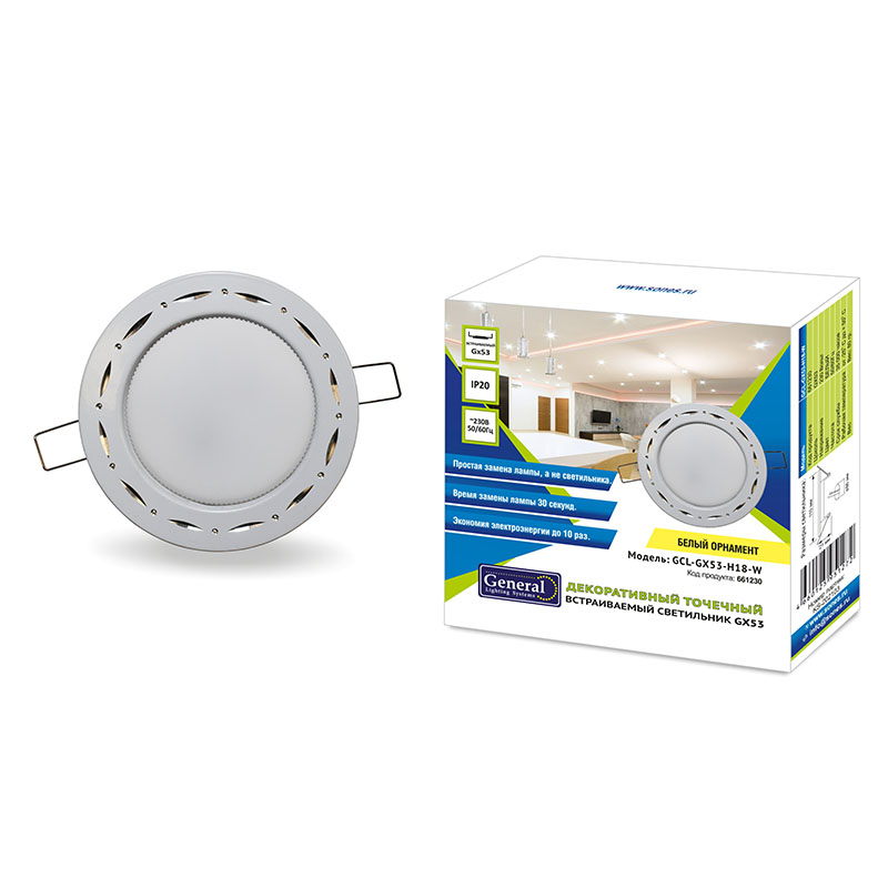 Светильник GCL-GX53-H18-W БЕЛЫЙ ОРНАМЕНТ