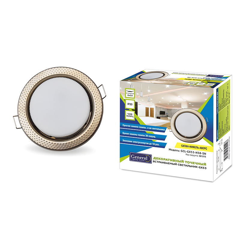 Светильник GCL-GX53-H38-SN САТИН-НИКЕЛЬ АВЕРС