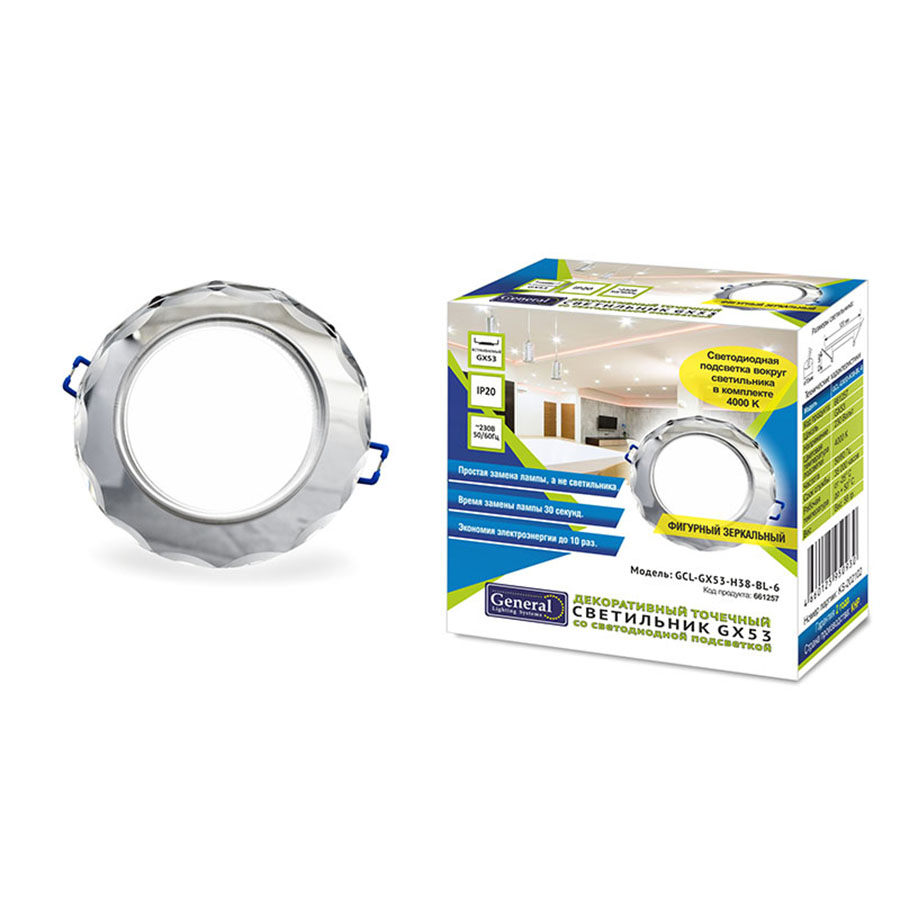 Светильник GCL-GX53-H38-BL-6 ФИГУРНЫЙ ЗЕРКАЛЬНЫЙ с подсветкой