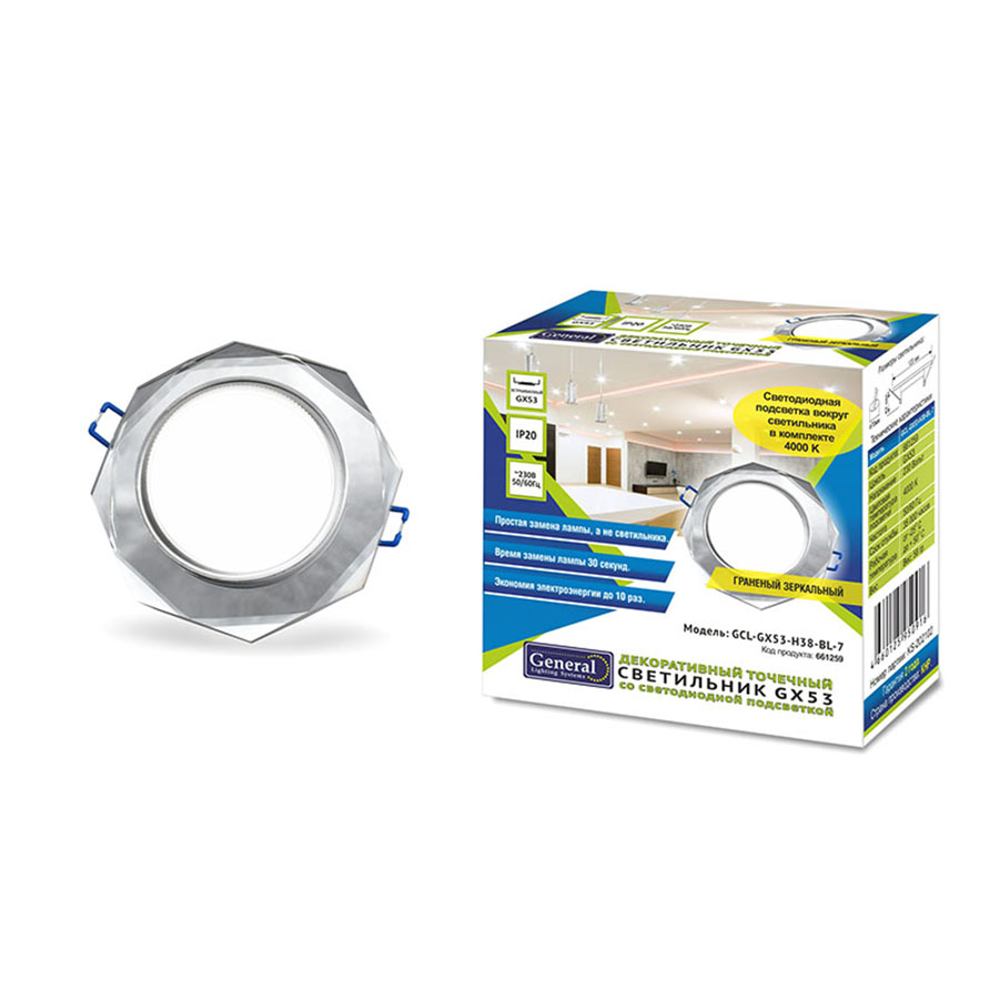 Светильник GCL-GX53-H38-BL-7 ГРАНЕНЫЙ ЗЕРКАЛЬНЫЙ с подсветкой