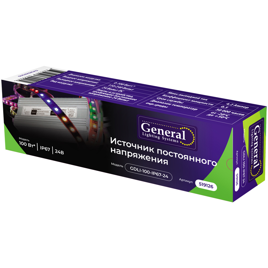 Драйвер светодиодный General GDLI-100-IP67-24, 519126